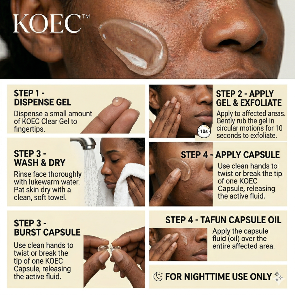 Stop the cycle of stubborn breakouts with our Acne-Clearance Duo. The KOEC Purifying Exfoliating Gel first neutralizes the “crust” of bacteria, sweat, and dead skin that causes hard texture and trapped clogs.